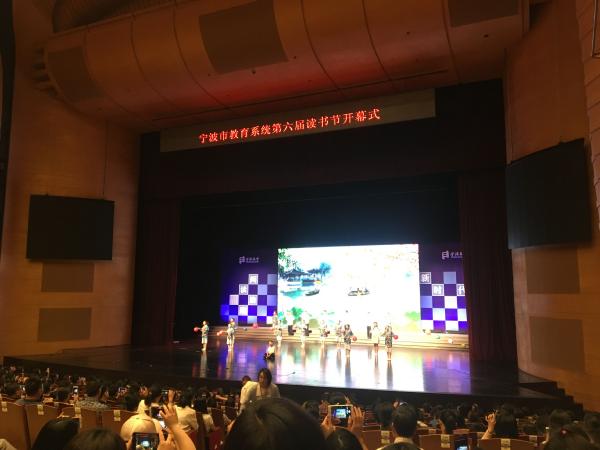 2018年4月28日下午,“阅读助跑新时代”——宁波市教育系统第六届读书节开幕式在文化广场保利剧院正式拉开帷幕,市教育局副局长胡赤弟,市文广新闻出版局党委副书记、副局长孟建耀,市妇联副主席张依群,共青团宁波市委副书记张义廉等领导出席了本次开幕式。著名作家杨红樱携“中国最美童书”助力甬城阅读。我馆社会活动部乐思诗老师参加了本次开幕式。
