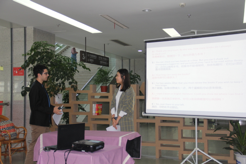 近年来随着学院不断推进国际化办学进程,国际友人陆续来访,图书馆员英语交流能力成为图书馆新的发展需求。为了提升馆员英语学习热情,更好地服务留学生读者,宁职院图书馆在创建全国巾帼文明岗过程中,开展了以“巾帼展风采,奉献在岗位”为主题的第二期馆员英语培训活动,通过英语情景对话形式展示馆员服务国外读者的风采。