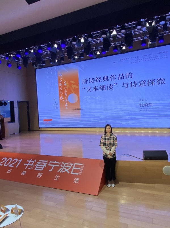 2021年书香宁波日系列活动开幕式在上午举行。该系列活动由中共宁波市委宣传部、宁波市文化广电旅游局及宁波市政协文化文史和学习委主办,宁波图书馆承办。开幕式结束以后,北京大学中文系主任杜晓勤教授做了《唐诗经典作品的“文本细读”与诗意探微》讲座。2021年“书香社区”论坛在下午举行,中国图书馆学会副理事长陈樱女士、宁波市文化广电旅游局副局长邱金岳先生、浙江省图书馆学会理事长褚树青先生等领导和专家以及来自全国各个社区文化主管单位负责人、图书馆馆长近100人以线上线下相结合的方式参加了此次论坛。论坛由宁波图书馆馆长徐益波主持,邱金岳副局长、褚树青理事长、陈樱副理事长先后致辞。中国图书馆学会阅读推广委员会主任李东来以《书香社区——再发现图书馆》为主题做了报告,从“新世纪图书馆体系化发展”、“图书馆阅读推广组织与活动”、“再发现图书馆:在社区寻找”三个方面进行阐述。报告后,上海市浦东新区张江镇孙桥社区、浙江省宁波市海曙区高桥镇岐阳村、安徽省六安市裕安区平桥乡金马社区、广东省深圳市盐田区盐田街道沿港社区、湖南省常德市武陵区东江街道新坡社、四川省德阳市旌阳区孝感街道秦宓社区六个社区作为2021年“书香社区”的代表进行交流分享,由中国图书馆学会阅读推广委员会副主任徐雁教授作专家点评,邱冠华副主任作总结点评。