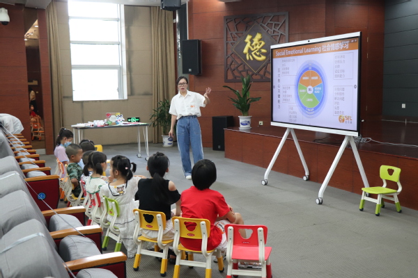 近日,北仑图书馆“仑图悦享假日学堂”正式开讲,该系列活动将开设“启乐宝贝、“智慧父母”、“艺术鉴赏”、“引领时尚”四个系列课程,服务北仑区市民,拓展图书馆文化教育职能。2022年7月12日,“启乐宝贝”SEL成长课第一课《拍拍“情绪”小怪兽》在图书馆德育讲堂开课,来自北仑区的15位小朋友报名参加。本次活动的主题内容是了解情绪,学会与“情绪”做朋友。