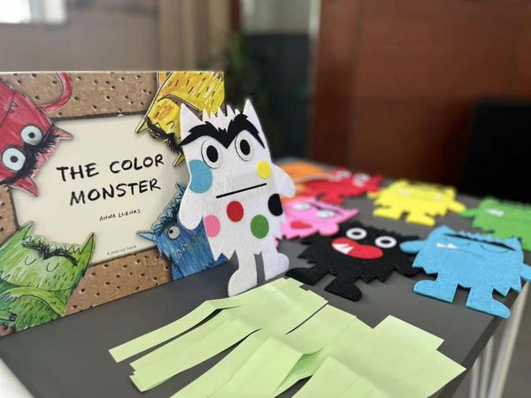 本期活动的主讲老师Jackie胡首先让小朋友们介绍下自己,并介绍下自己喜欢的颜色。通过颜色来代表自己的情绪变化,“黄色代表开心、蓝色代表伤心、红色代表愤怒……”胡老师用绘本形式入手,用各种颜色的“情绪”小怪兽来代表不同的心情。并让小朋友们说说自己什么样的情况下会有什么样的心情。小朋友们兴致高扬,积极举手发言。“当你生气的的时候你会选择做什么事情让自己平静下来呢?”“吃东西、做作业……”孩子们积极踊跃发言,并非常真实的反映自己的所感所想,胡老师给予了高度的评价。最后孩子们在胡老师下发的情绪选择轮上亲手画上自己的情绪图案,在上面画出自己生气、不开心或是害怕的时候想做的事情,让孩子们自己给不良情绪找到了出口,从而明白管理情绪的手段和方法。