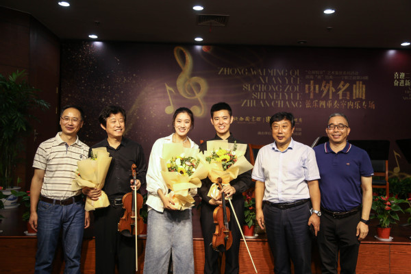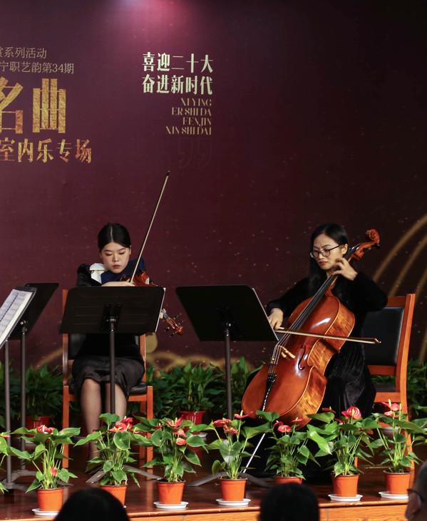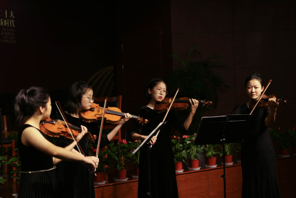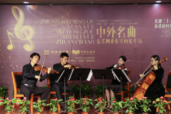 为了丰富广大群众的业余生活,提升北仑区域居民的文化素养,2022年9月10日下午,在教师节和中秋节双节同庆的日子里,北仑图书馆邀请“海滨”室内乐团的4位嘉宾在一楼报告厅举办了一场《中外名曲弦乐四重奏室内乐专场音乐会》。