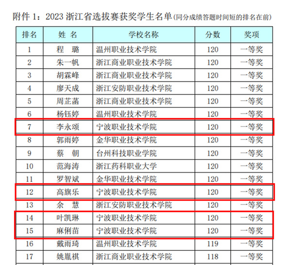 此次比赛全省共计40所院校参赛,报名人数达16709人,参赛人数11739人,相比2022年参赛人数翻了一番,竞争更加激烈。图书馆组织学生参加此次选拔赛,我校共有九百余名学生参与。赛前,指导老师贡金涛、杨春平、周燕通过线下一对多辅导、QQ群线上答疑、线下培训讲座等方式进行辅导,同学们经过多日的备赛,沉着应对,认真比赛。最终,经过三天的角逐,我校7名学生冲进全省前100名,李永颂、叶凯琳、高旗乐、麻俐苗获得一等奖,王旭、金娇娇、罗榆获得二等奖,其中,李永颂、叶凯琳两位同学在众多学生中脱颖而出,晋级全国赛初赛。同时校内评选出本次积极参与组织的同学20余名。