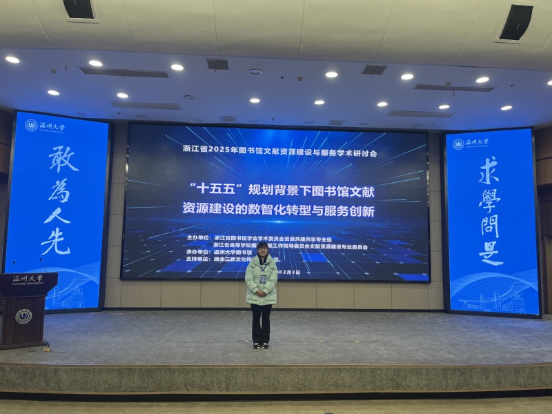 2025年12月2日—3日,浙江省2025年图书馆文献资源建设与服务学术研讨会在温州大学图书馆举行。本次研讨会由浙江省图书馆学会学术委员会资源共建共享专业组、浙江省高等学校图书情报工作指导委员会文献资源建设专业委员会主办,温州大学图书馆承办,来自全省公共图书馆、高校图书馆的百余位文献资源建设专家学者及采编业务骨干一同参会,我馆杨春平老师参加会议。